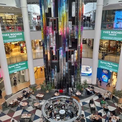 ◆モスクワでは本格的なベトナム料理が食べられます◆ アトリウムショッピングモールには、光天井の下、吹き抜けに佇立した壁に虹が流れている。1階···