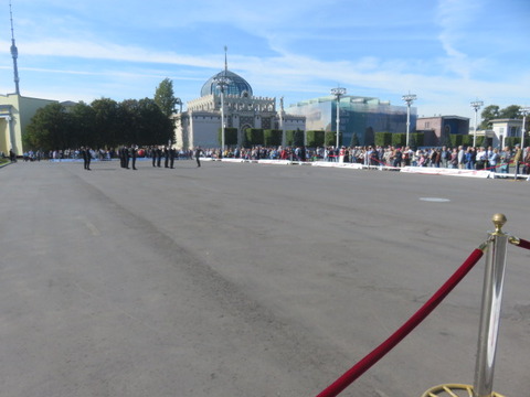 ◆馬術の音楽隊◆ 友情の噴水の後ろから、音楽が聴こえてきた。広場の一角が柵で囲われ、その中で制服を着た一団が演奏をしていた。 演奏の様子···
